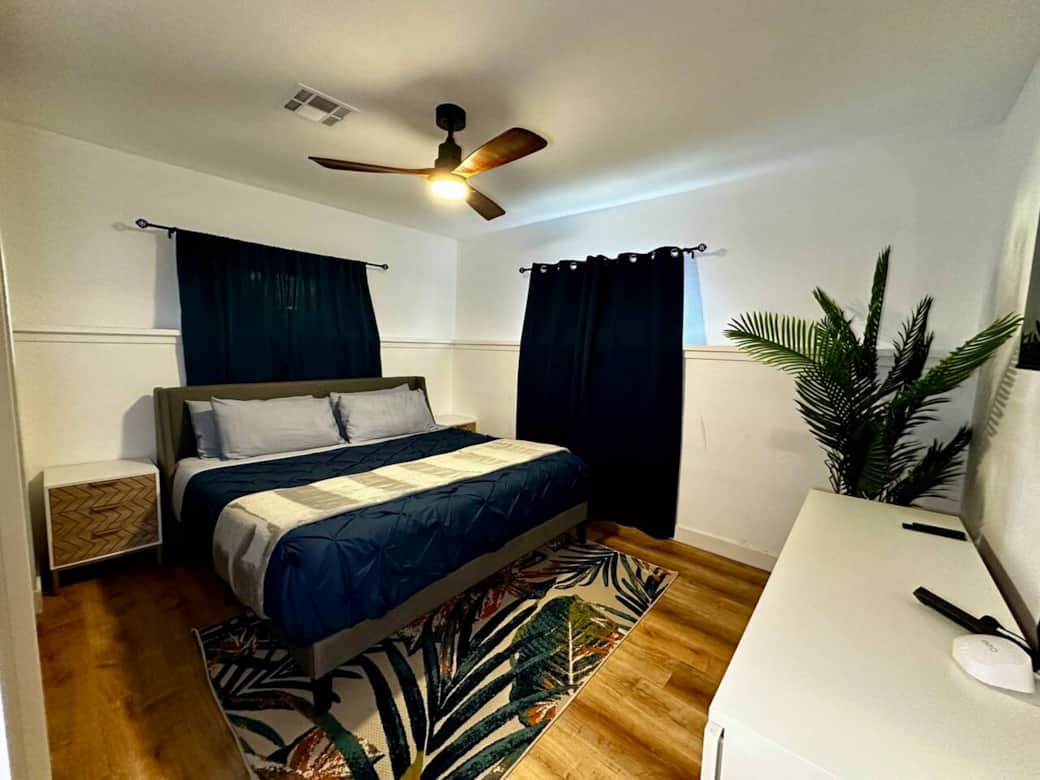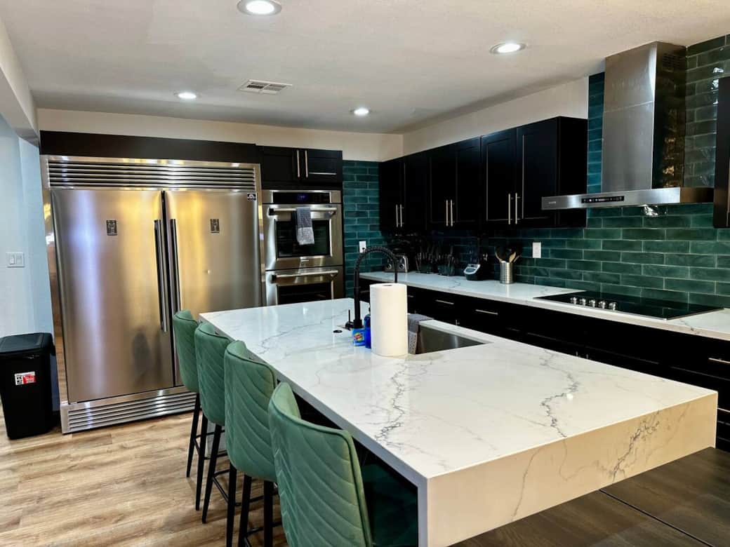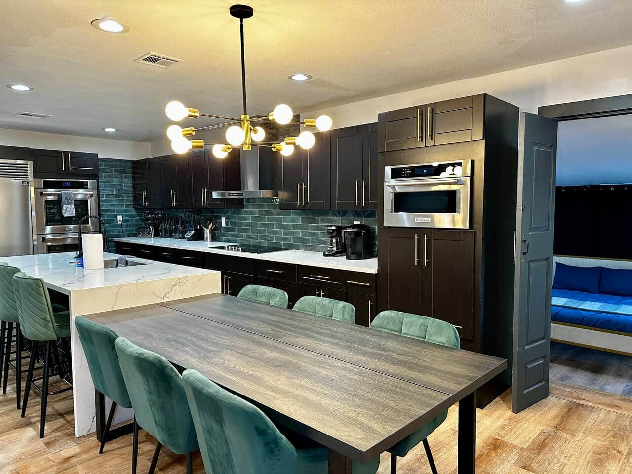 Welcome to The Peacock Inn by vegas-bnb, a spacious retreat, offering approximately 3,200 sqft of indoor opulence and 2,000 sqft of outdoor entertainment on a half-acre lot. Upon arrival, our spacious living room welcomes you with 3 sofas, 3 chairs (seating 9), an 85-inch TV, and a dining area for 8, complemented by countertop seating for 4. The modern kitchen, equipped with dinnerware for 18 and all essential cooking and bakeware, ensures a delightful culinary experience. Featuring 8 bedrooms and 4 baths, The Peacock Inn boasts a extra large water heater system, providing hot water on demand and an ample supply for consecutive showers. Rest on high-quality Tulo/Sleepy’s mattresses. The main floor hosts a captivating living room with an 85-inch Samsung TV offering streaming on Hulu, Disney, ESPN. The kitchen showcases a 60-inch wide built-in refrigerator, double ovens, cooktop burner, dishwasher, and microwave/airfryer. The dining room accommodates 8 guests, with additional seating for 4 on the countertop. Venture upstairs to discover Room 1 with an attached bathroom, Room 2 with shared bathroom access, and Room 3, also with shared bathroom access. A few steps down, Rooms 4 and 5 offer unique features, while Room 6 provides a backyard escape. The basement level, just 5 steps down and with several windows, introduces Rooms 7 and 8, each with amenities for a relaxing stay. Outdoors, enjoy a fire pit, 4 sun beds, Large Island BBQ, pool, hot tub, and an outdoor dining table seating. MAIN FLOOR: Living Room - 85 inch Samsung Tv with streaming on Hulu, Disney, ESPN, 3 sofas and 3 arm chairs for seating for 9 Kitchen- 60 inch wide built in refrigerator. Double ovens, cooktop burner, dishwasher, and microwave/airfryer. Dining Room- seating for 8 and seating for 4 on countertop A FEW STEPS DOWN FROM MAIN FLOOR: Room 1 - 2 Queen beds, dresser, closet, Samsung TV, that also has a hallway entrance to the bathroom. Room 2 - 1 King bed, dresser, Samsung TV, has a hallway bathroom next to it. Room 3 - 3 Queen beds, dresser, closet, Samsung TV, and patio door leading to the backyard. BASEMENT LEVEL 5 STEPS DOWN FROM MAIN FLOOR AND INCLUDING SEVERAL WINDOWS: Room 4 - 3 Queen beds, dresser, closet, Samsung TV, and patio door, shared bathroom with room 4. Room 5 - 1 King, bathroom right outside bedroom. UPSTAIRS FROM MAIN FLOOR: Room 6 - 2 Queen, dresser, closet, Samsung TV, bathroom attached. Room 7 - 1 Queen, dresser, closet, Samsung TV, bathroom is shared with room 7. Room 8 - 1 Queen, dresser, closet, Samsung TV, bathroom is shared with bedroom 6. OTHER THINGS TO NOTE: *A credit card booking fee transaction of 4% is non refundable with direct bookings. *Extra guest fees are $50.00 per person per night. *Max occupancy: 16 *Max number of Cars 6 *Outdoor quiet hours 10pm to 9am per the City of North Las Vegas *Pet fee is $100 per pet *Security cameras are on the exterior of house only and are monitored by a contracted third party security company for safety. HOUSE RULES: 1. VEHICLES: No more than 6 vehicles are permitted on the property, unless agreed upon before check in. 2. ADDITIONAL GUESTS: Any additional guests that were not noted at the time of reserving the home will be charged to you at $50.00 -85.00 per day/per person depending on season, failure to disclose all guests is a violation and will result in a fine of $100.00 per person/per day fee. 3. UNAUTHORIZED GUESTS: Any unauthorized guests, friends, strangers that arrive at the property without prior approval will cause immediate termination, eviction and cancellation of the reservation without refund. Do not bring any adult workers to the house. Many instances these people will pose as workers and rob guests. Do not solicit these workers. 4. QUIET HOURS: This property is situated in a residential, family community governed by a Neighborhood Association. Making noise, such as music or loud voices, between 10 PM and 9 AM on Friday-Sunday is prohibited and a public nuisance. Noise after 10 PM to 9 AM Monday-Friday is strictly regulated by the City of North Las Vegas. No more than 65 decibels allowed. 5. NOISE MONITORING OUTSIDE: Sounds of more than 85 decibels is not permitted outside at anytime during normal hours. No outdoor speakers. No bands. No musical equipment. No DJ's. No Parties. No excess noise outside is permitted. Failure to adhere to these rules will be subject to termination of the reservation, eviction, and no refund will be issued. Please be considerate to all neighbors. 6. SUPPLIES: This property has a starter amount of supplies such as toilet paper, paper towels, trash bags, and propane to get you going. It is the guest’s responsibility to buy supplies that they need after the supplies provided if they run out. 7. MAINTENANCE- We reserve the right to have the house maintained during your stay to avoid leaves going in the pool and the pool turning green from lack of maintenance. a. LANDSCAPERS – will be trimming bushes and blowing away leaves so that it keeps the backyard and front yard clean. Their scheduled days are Tuesday every week. b. POOL MAINTENANCE – will be cleaning the pool on Mondays and Thursdays. This is to protect guests and make sure the pool is clean and has enough chemicals in the pool. c. TRASH: Trash pick-up days are Friday, Thursday night an employee will move the trash dumpster for pick up and Friday they will move the dumpster back in. Whole house access. Messages, emails, texts, phone calls.