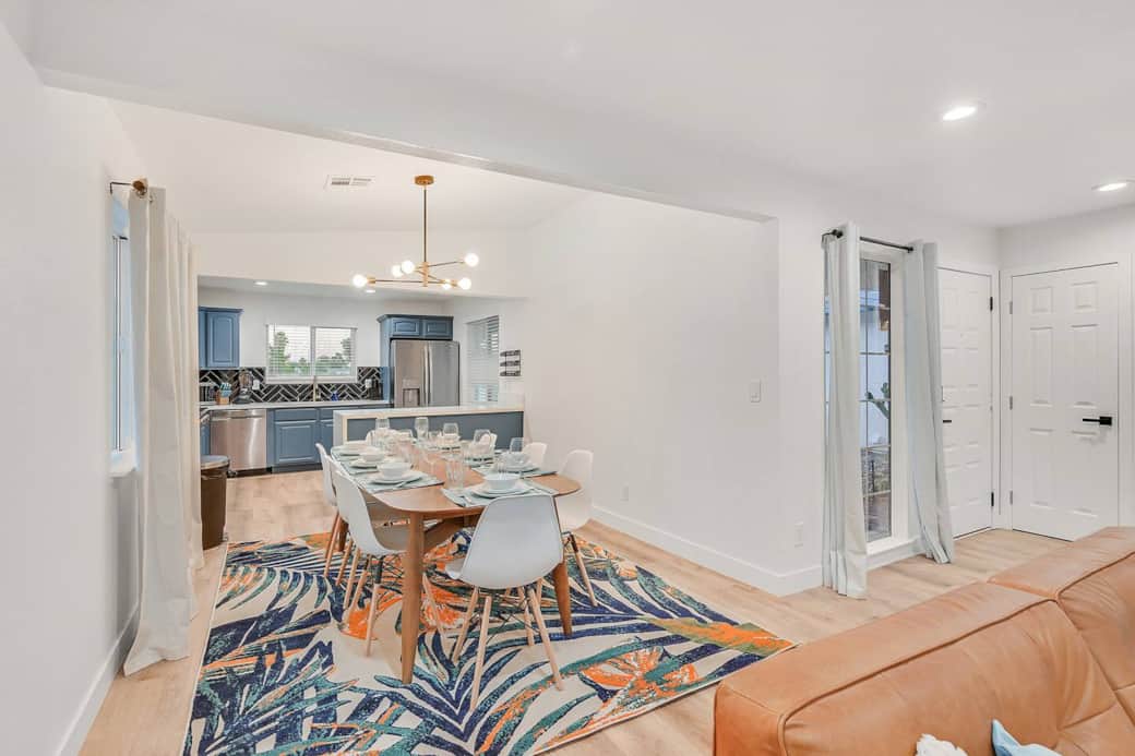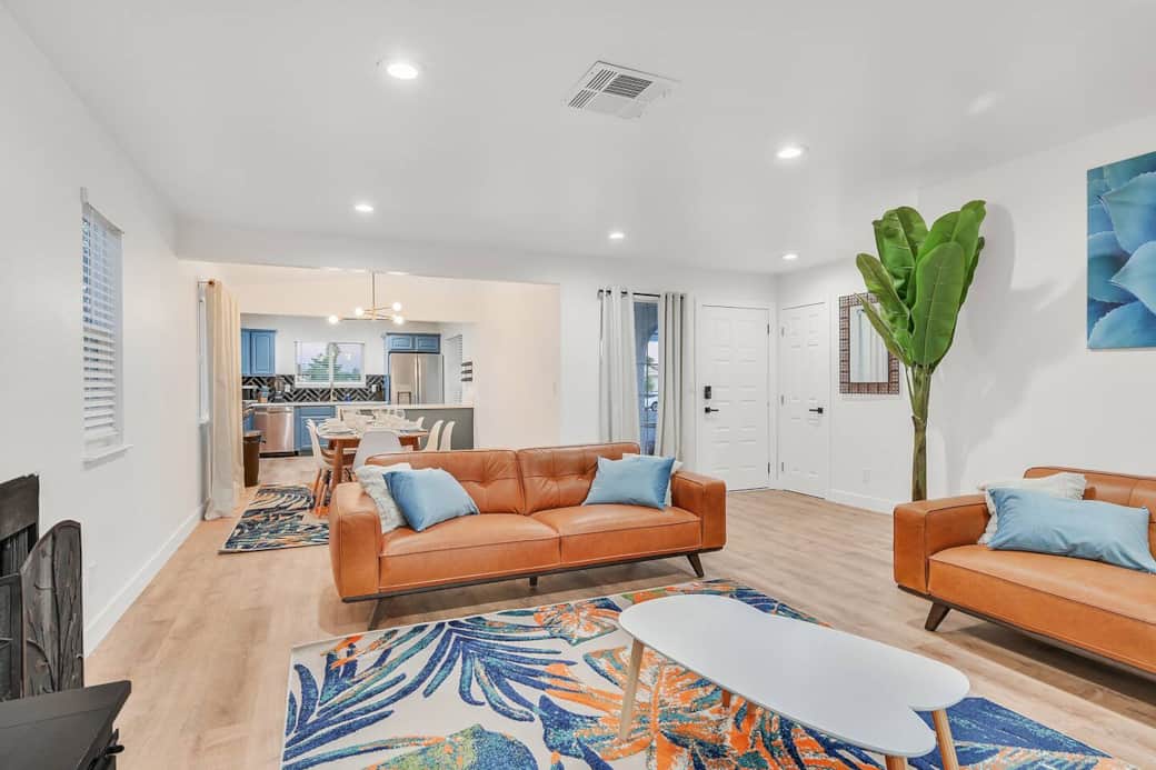 Welcome to the Tropicana Desert Villa, where you can experience the comfort of approximately 2,800 sqft of indoor living space and 1/3 acre of outdoor living space. With an additional 440 sqft garage, you'll have plenty of room to relax and enjoy your stay. Our primary goal is to make you feel right at home from the moment you step inside. Welcome to the Tropicana Desert Villa, where you can experience the comfort of approximately 2,800 sqft of indoor living space and 1/3 acre of outdoor living space. With an additional 440 sqft garage, you'll have plenty of room to relax and enjoy your stay. Our primary goal is to make you feel right at home from the moment you step inside. Upon entering, you'll be greeted by a spacious living room, featuring two comfortable sofas and a 65-inch TV. The dining area provides a table that can seat eight guests, perfect for enjoying meals together. In the game room, you'll find two pub tables that seat four people each, two additional sofas, a poker table for up to eight players, a pool table, and a refrigerator. The modern kitchen is fully equipped with dinnerware for twelve people, as well as all the necessary cooking and bakeware. Feel free to prepare a nice dinner during your stay, utilizing the kitchen's amenities. The Tropicana Desert Villa offers a total of five bedrooms and three bathrooms. Each bedroom is equipped with a Smart TV, ensuring entertainment options for all guests. Additionally, there are six king-size beds, three refrigerators, and three ovens available. The mattresses are of high quality and provide a medium-firm comfort level, ensuring a restful sleep. Here is the breakdown of the room configurations: 1. Bedroom 1: King bed 2. Bedroom 2: King bed 3. Bedroom 3: King bed 4. Bedroom 4: 2 King beds 5. Bedroom 5: King bed For your enjoyment, we provide a pool table and a poker table in the game room, along with a Smart TV for entertainment purposes. Outdoors, you'll find a fire pit, four sun beds, six lounge chairs, a built-in BBQ, a refreshing pool, a relaxing jacuzzi, and many other amenities to enhance your stay. Additionally, there is an outdoor ping pong table for some friendly competition. OTHER THINGS TO NOTE: *A credit card booking fee transaction of 4% is non refundable with no exceptions when booking direct. *Extra guest fees are $50.00 per person per night. *Max occupancy: 12 *Max number of Cars 6 *Pet fee is $100 per pet *Outdoor quiet hours 10pm to 9am per the City of North Las Vegas *Security cameras are on the exterior perimeter of the house only and are monitored by a contracted third party security company for safety. 1. Doorbell camera 2. Camera overlooking driveway to right 3. Camera overlooking driveway to left 4. Camera overlooking backyard by spa 5. Camera overlooking pool equipment Noise Monitoring is in living room and can only detect decibels. HOUSE RULES: 1. VEHICLES: 1. No more than 6 vehicles are permitted on the property; 1 car should be parked in the garage if possible. The Association requires that cars parked on the driveway only and not be parked in front of the property and not in front of neighbors’ homes. 2. POOL HEATING: If you would like pool heating please text number on file. The fee is $125.00 to $200.00 per day times the number of nights for your reservation. The spa heating is free. The heating is $200 per day if the weather is 60 degrees or below. This is a very large deep pool. 3. ADDITIONAL GUESTS: Any additional guests that were not noted at the time of reserving the home will be charged to you at $50.00 per day/per person, failure to disclose all guests is a violation and will result in a fine of $100.00 per person/per day fee. 4. UNAUTHORIZED GUESTS: Any unauthorized guests, friends, strangers that arrive at the property without prior approval will cause immediate termination, eviction and cancellation of the reservation without refund. Do not bring any adult entertainer workers to the house. Many instances these people will pose as workers and rob guests. Do not solicit these workers. 5. QUIET HOURS: This property is situated in a residential, family community governed by a Neighborhood Association. Making noise, such as music or loud voices, between 10 PM and 9AM on Friday-Sunday is prohibited and a public nuisance. Noise after 10 PM to 9AM Monday-Friday is strictly regulated by the City of North Las Vegas. No more than 65 decibels allowed. 6. NOISE MONITORING OUTSIDE: Sounds of more than 85 decibels is not permitted outside at anytime during normal hours. No outdoor speakers. No bands. No musical equipment. No DJ's. No Parties. No excess noise outside is permitted. Failure to adhere to these rules will be subject to termination of the reservation, eviction, and no refund will be issued. Please be considerate to all neighbors. 7. MAINTENANCE- We reserve the right to have the house maintained during your stay to avoid leaves going in the pool and the pool turning green from lack of maintenance. a. LANDSCAPERS – will be trimming bushes and blowing away leaves so that it keeps the backyard and front yard clean. Their scheduled days are Tuesday every week. b. POOL MAINTENANCE – will be cleaning the pool on Mondays and Thursdays. This is to protect guests and make sure the pool is clean and has enough chemicals in the pool. c. TRASH: Trash pick-up days are Saturday's, Friday night an employee will move the trash bins out for pick up and Friday they will move the bins back on the property.. 6. SUPPLIES: This property has a starter amount of supplies such as toilet paper, paper towels, trash bags, and propane to get you going. It is the guest’s responsibility to buy supplies that they need after the supplies provided if they run out. Make some memories at this unique and family-friendly place You will have access to the whole house. Guest can message, call, email, or text me throughout their stay.